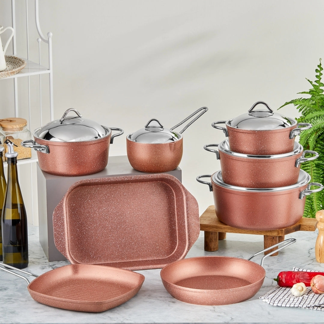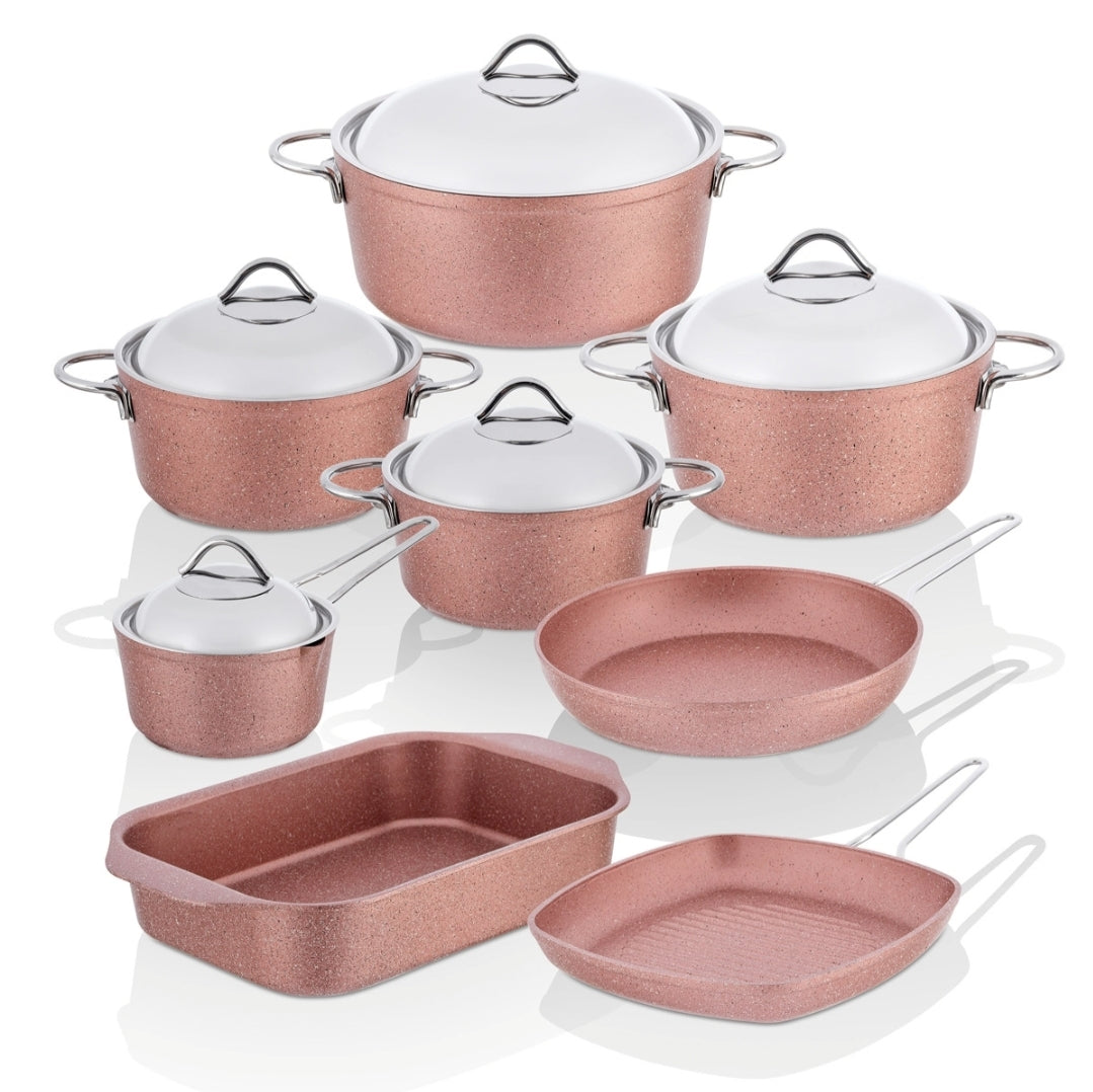 استمتع بالأناقة في المطبخ مع المجموعة المميزة المكونة من 13 قطعة من Taç Granite الرز الذهبي . مطبخ مثالي للاستخدام اليومي أو المناسبات الخاصة!
